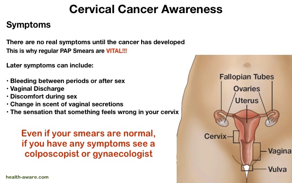 If you have any of the symptoms mentioned in the chart above, especially abnormal bleeding, it is important to have a thorough check up, preferably with a gynaecologist, regardless of whether or not you have had a recent negative smear.